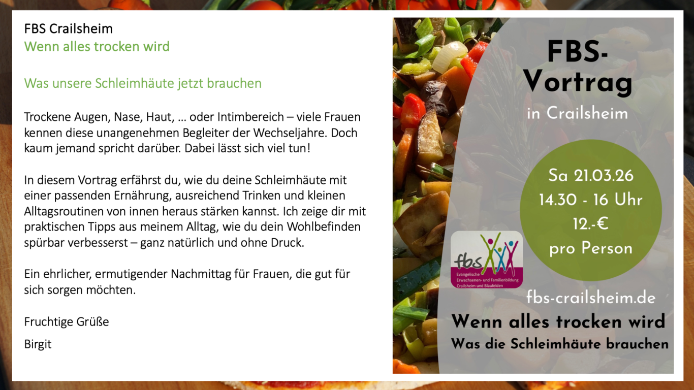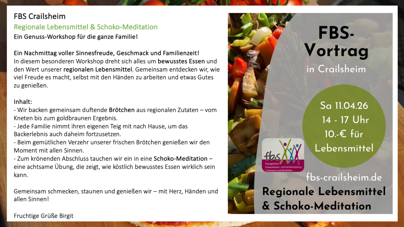 Bitte für diesen Kurs anmelden unter 07951 42922 oder Kontaktformular FBS