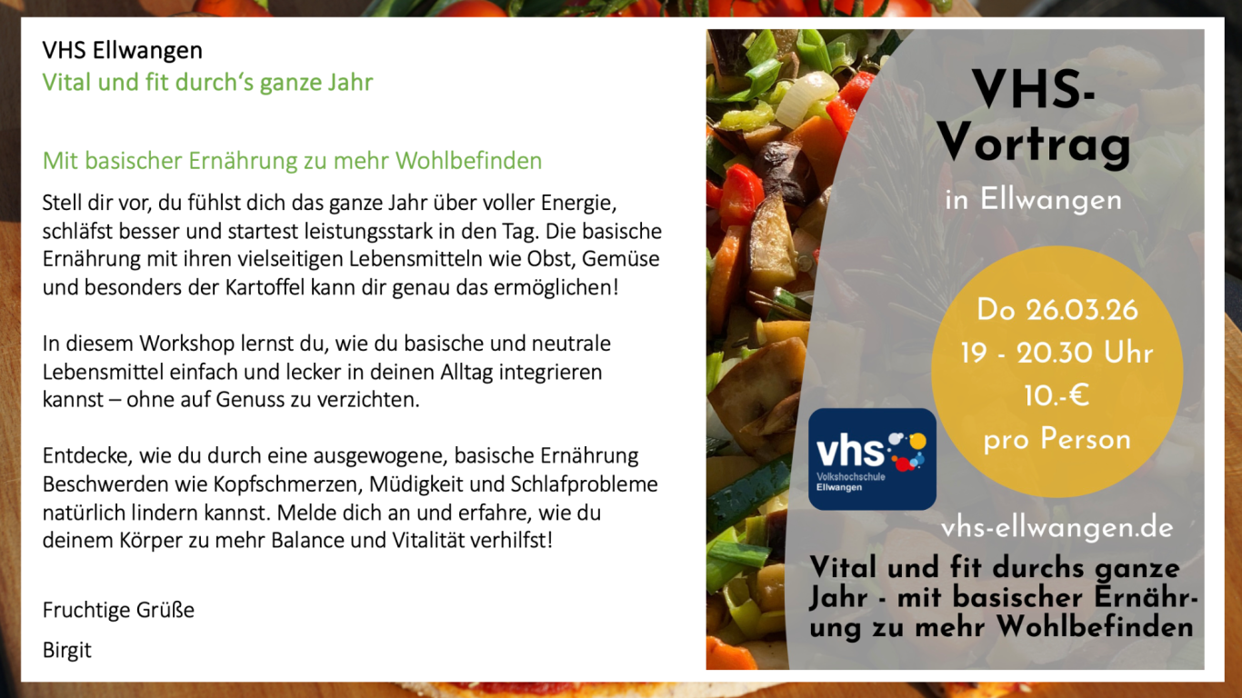 Bitte für diesen Kurs anmelden unter 07961 84-870 oder www.vhs-ellwangen.de