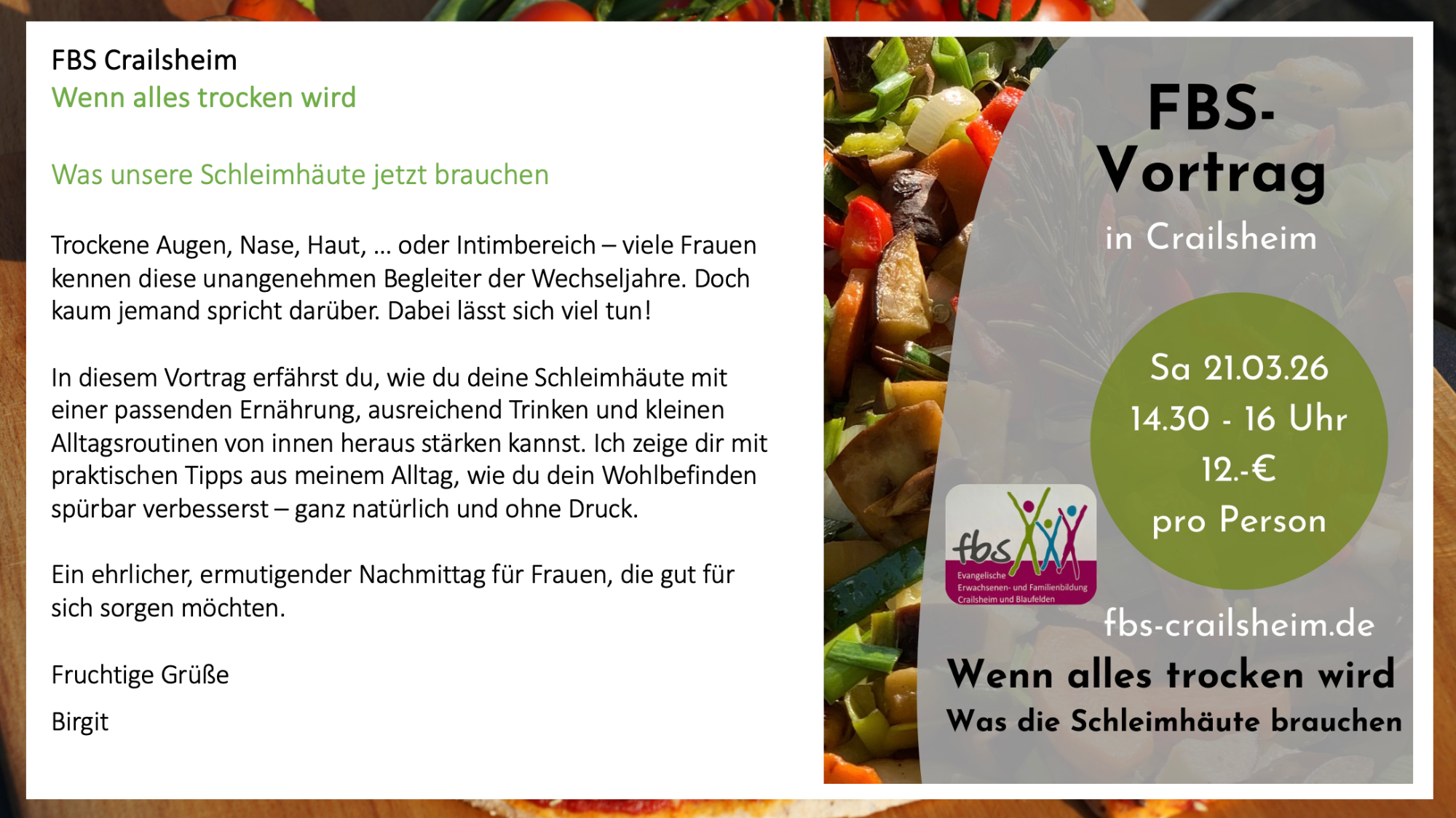 Bitte für diesen Kurs anmelden unter 07951 42922 oder Kontaktformular FBS