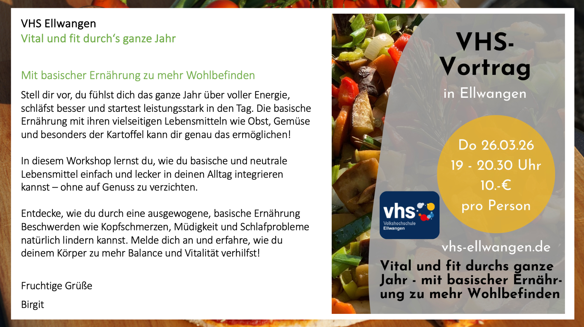 Bitte für diesen Kurs anmelden unter 07961 8786187 oder www.vhs-ostalb.de
